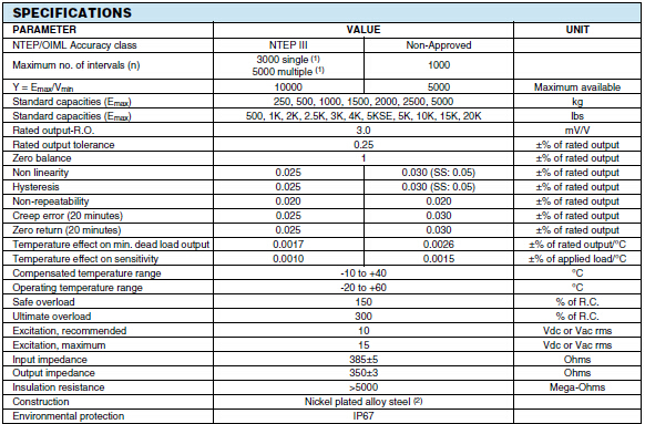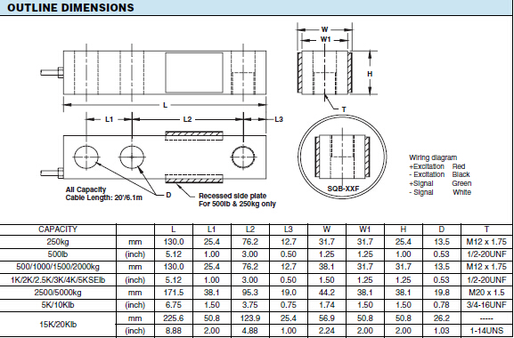 美國世銓Celtron SQB系列稱重傳感器所有量程如下: FuC廣州南創電子科技有限公司