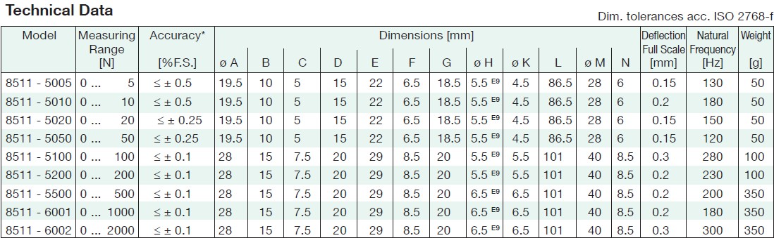 截至測量范圍0 ... 200千牛頓的負載8511-6001傳感器不適合于一個非常高的數(shù)字周期性載荷。