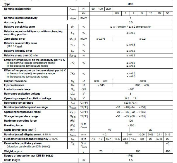 德國HBM 稱重傳感器U9B/20KN技術指標:BbG廣州南創(chuàng)電子科技有限公司