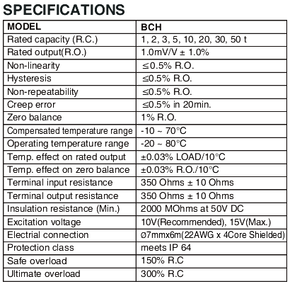 韓國奉信BCH稱重傳感器量程如下:XD3廣州南創電子科技有限公司