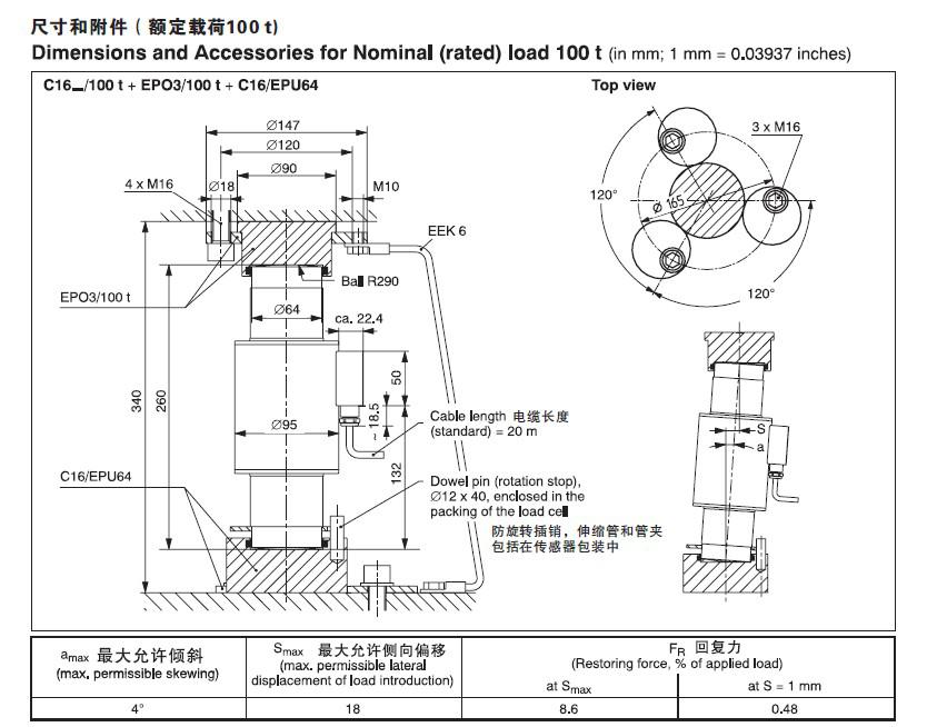 C16AC3/100T傳感器精度等級:C1.5-0.033%, C3-0.017%, C6-0.008%