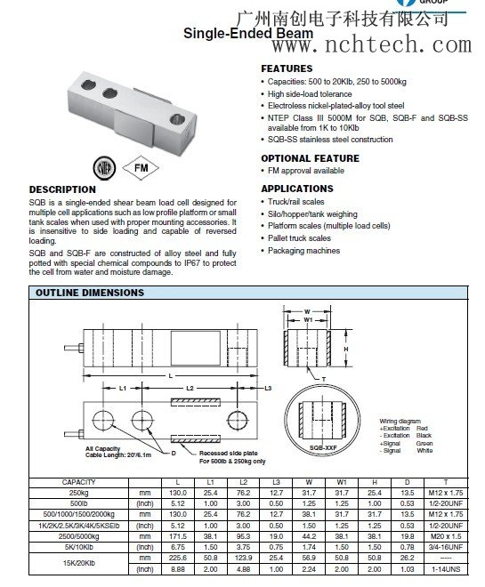 SQB、SQB-F、SQB-SS量程1K到10KLB,獲得NTEP Class III 5000M認(rèn)證dhc廣州南創(chuàng)電子科技有限公司