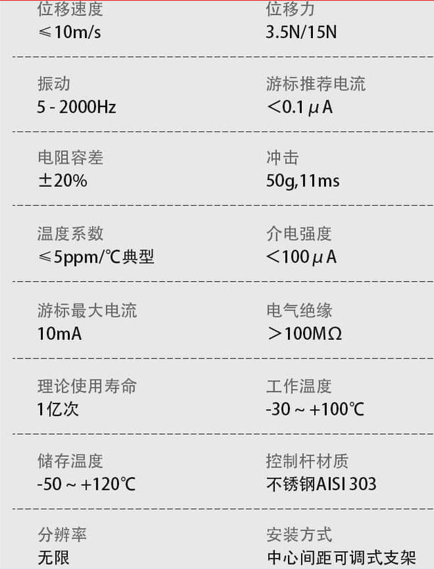 DDG廣州南創電子科技有限公司還必須注意的是,LTC-M-0350-S-XL0396拉桿式直線位移傳感器杰佛倫指標種經常引用“無限分辨率”。雖然理論上是這樣,但許多控制系統需要數字數據,因此實際的分辨率將是模擬/數字轉換器的分辨率設計LTC-M-0350-S-XL0396拉桿式直線位移傳感器杰佛倫成本。奇怪的是,在航空航天、醫療和石化行業的一些安全相關應用中,電位計被歸類為LTC-M-0375-S-XL0396位移傳感器gefran杰佛倫。這意味著,雖然電位計有很多的故障模式,但它們并不像電子傳感器那樣受到嚴格的設計和選型審查。