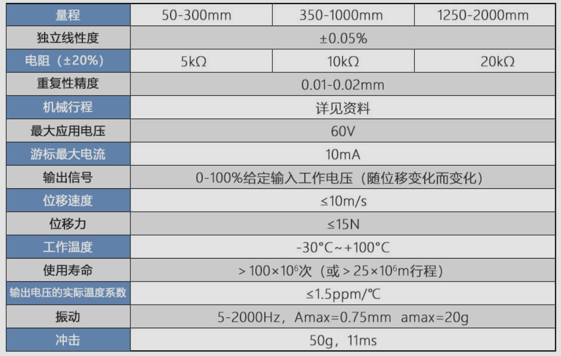 PC直線位移傳感器(別名:電子尺,電阻尺,電位器,位移傳感器)原理:電位計原理,使用 2 個球節(jié)的機械固定和自對準(zhǔn)連桿,最大角運動達 ± 30°,獨立線性度 ± 0.05%,可重復(fù)性 0.01 毫米,無限分辨率。超出理論電氣行程后無電氣信號輸出變化安裝更簡單。輸出直流電壓信號,也可以通過內(nèi)置或者外置的變送模塊講信號轉(zhuǎn)換成標(biāo)準(zhǔn)的0-5V、0-10V或者4-20mA直流信號,也可以遠距離傳輸控制要求。適用于各種高機械強度場合的位移測量。SKV廣州南創(chuàng)電子科技有限公司
