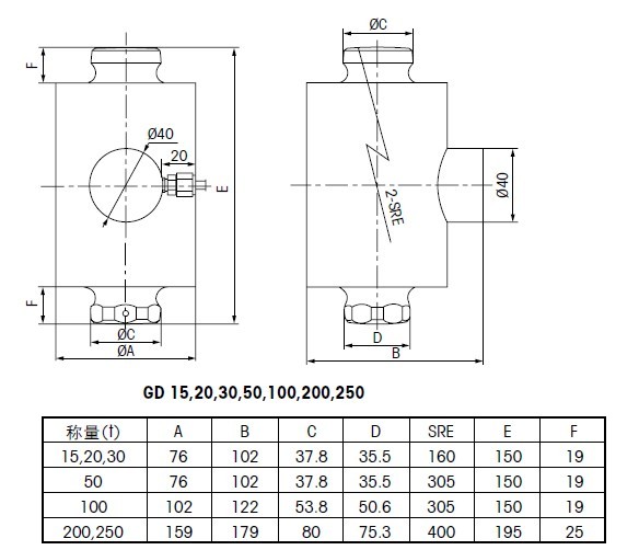 GD-200T GD搖柱式稱重傳感器,容量200T,20M電纜