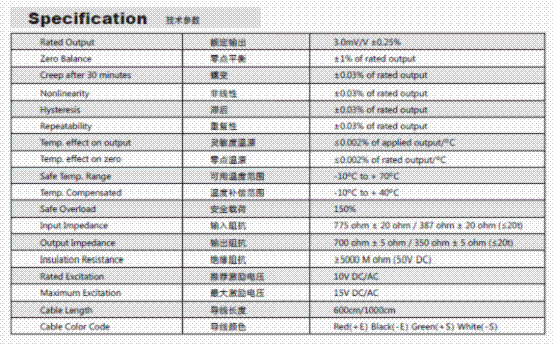 美國Transcell DBSL-3T稱重傳感器技術(shù)參數(shù)圖: