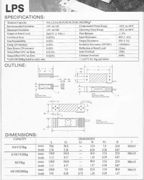 LPS-3kg,Celtron LPS-10kg稱重傳感器主要參數: