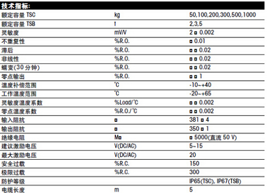 梅特勒托利多稱重傳感器TSC-200kg產品參數:FVC廣州南創電子科技有限公司