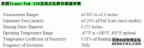 美國Trans-Tek 330直線位移傳感器參數圖:Yh0廣州南創電子科技有限公司