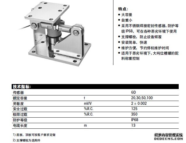 GW-100kg稱重模塊采用精美不銹鋼焊接密封梅特勒托利多MTB系列稱重傳感器,防護等級達到IP68,能夠在任何的惡劣環境下使用工作,它安裝簡單快速,球形連接件始終保持著模塊的垂直稱重狀態,防止設備傾覆,支撐螺栓,維護方便,節約停機維護時間,防爆GW不銹鋼稱重模塊適用于醫藥、食品、化工等行業的中小容量反應釜的配料稱重控制。JJQ廣州南創電子科技有限公司