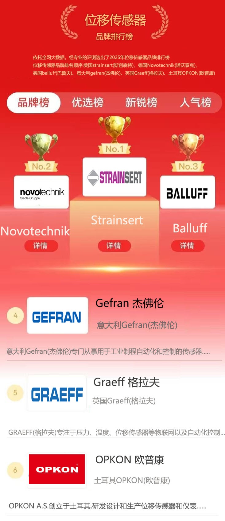 以下排名有國(guó)家權(quán)威部門(mén):中國(guó)傳感器協(xié)會(huì)、中國(guó)衡器計(jì)量檢測(cè)中心根據(jù)進(jìn)口品牌位移傳感器在中國(guó)市場(chǎng)的客戶(hù)基礎(chǔ)、品牌歷史、口碑、品質(zhì)、技術(shù)實(shí)力、售后服務(wù)、質(zhì)保時(shí)間長(zhǎng)短、行業(yè)影響力綜合評(píng)比。