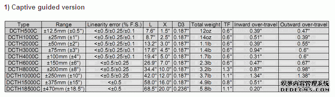 英國RDP DCTH LVDT位移傳感器產品技術參數圖:GQM廣州南創電子科技有限公司