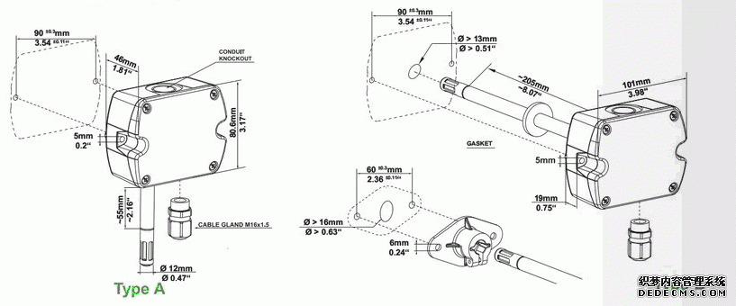 奧地利E+E EE160系列溫濕度變送器產品尺寸圖:AiR廣州南創電子科技有限公司