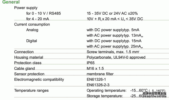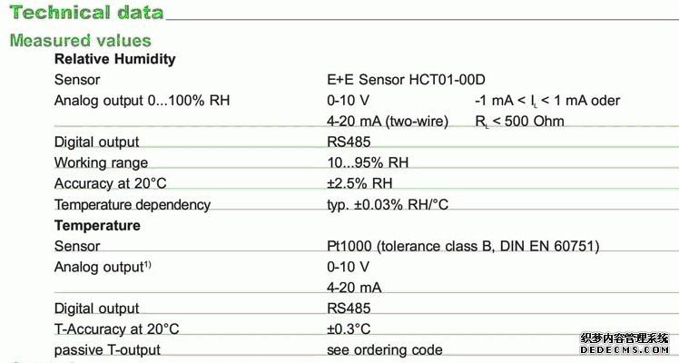 奧地利E+E EE160系列溫濕度變送器技術參數圖:AiR廣州南創電子科技有限公司
