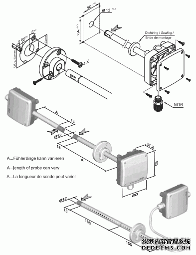 奧地利E+E EE66-VC風速變送器產品尺寸圖:hya廣州南創電子科技有限公司