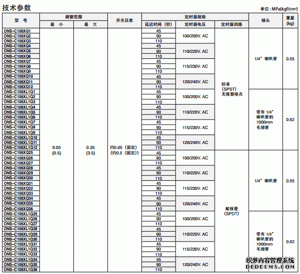 日本鷺宮ONS型油壓保護用壓差控制器部分型號如下:VfB廣州南創電子科技有限公司