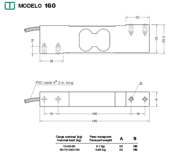 尺寸在mm MODELO160 ESPECIFICACIONES規格